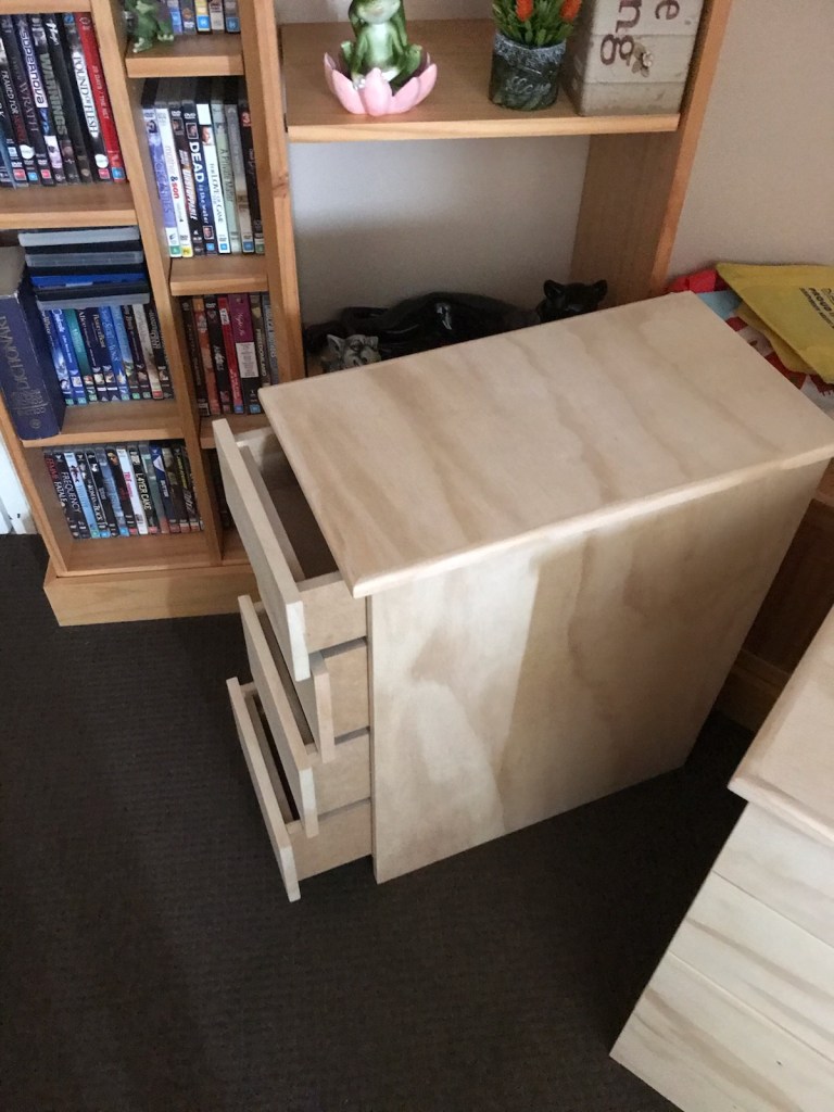 Undeterred, shed member Ken took the cabinets home and completed them there during the shed shutdown. We’re pleased to report Virginia collected the cabinets and is delighted with them. Thanks Ken!