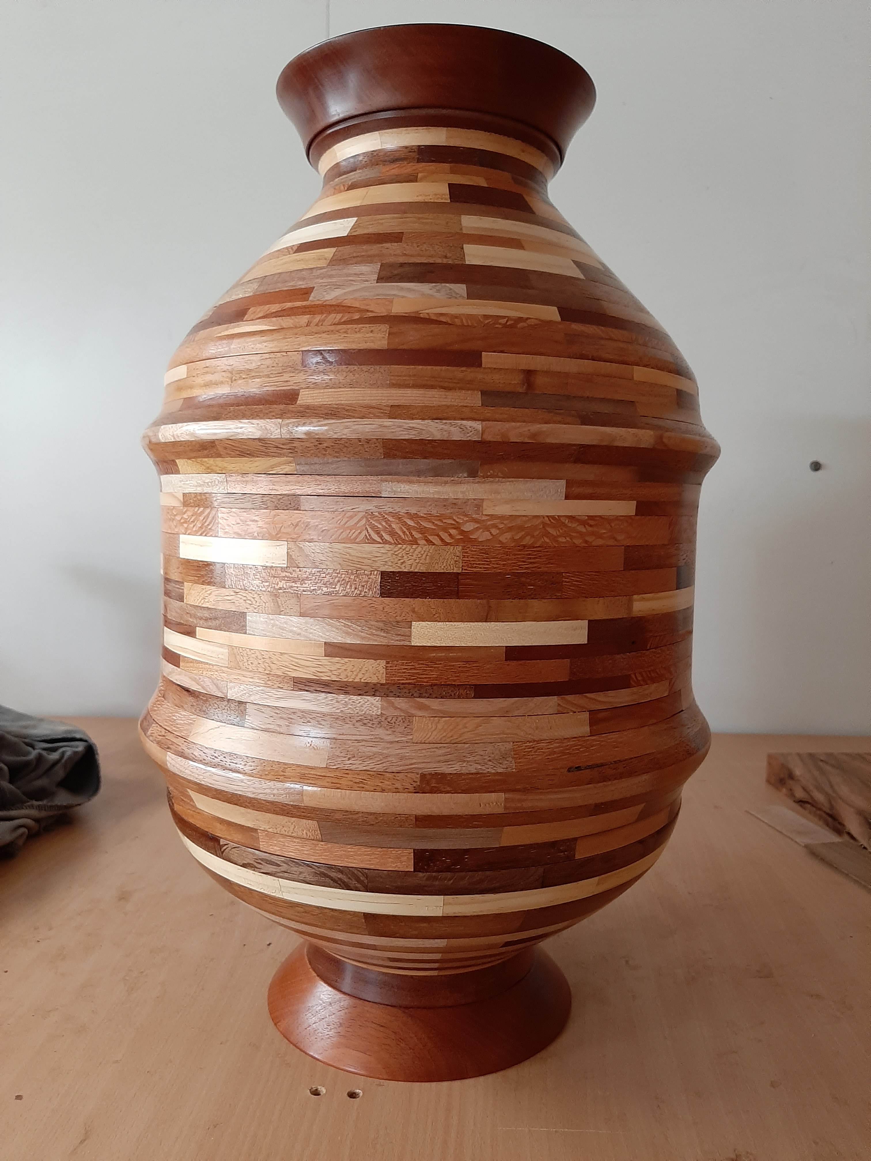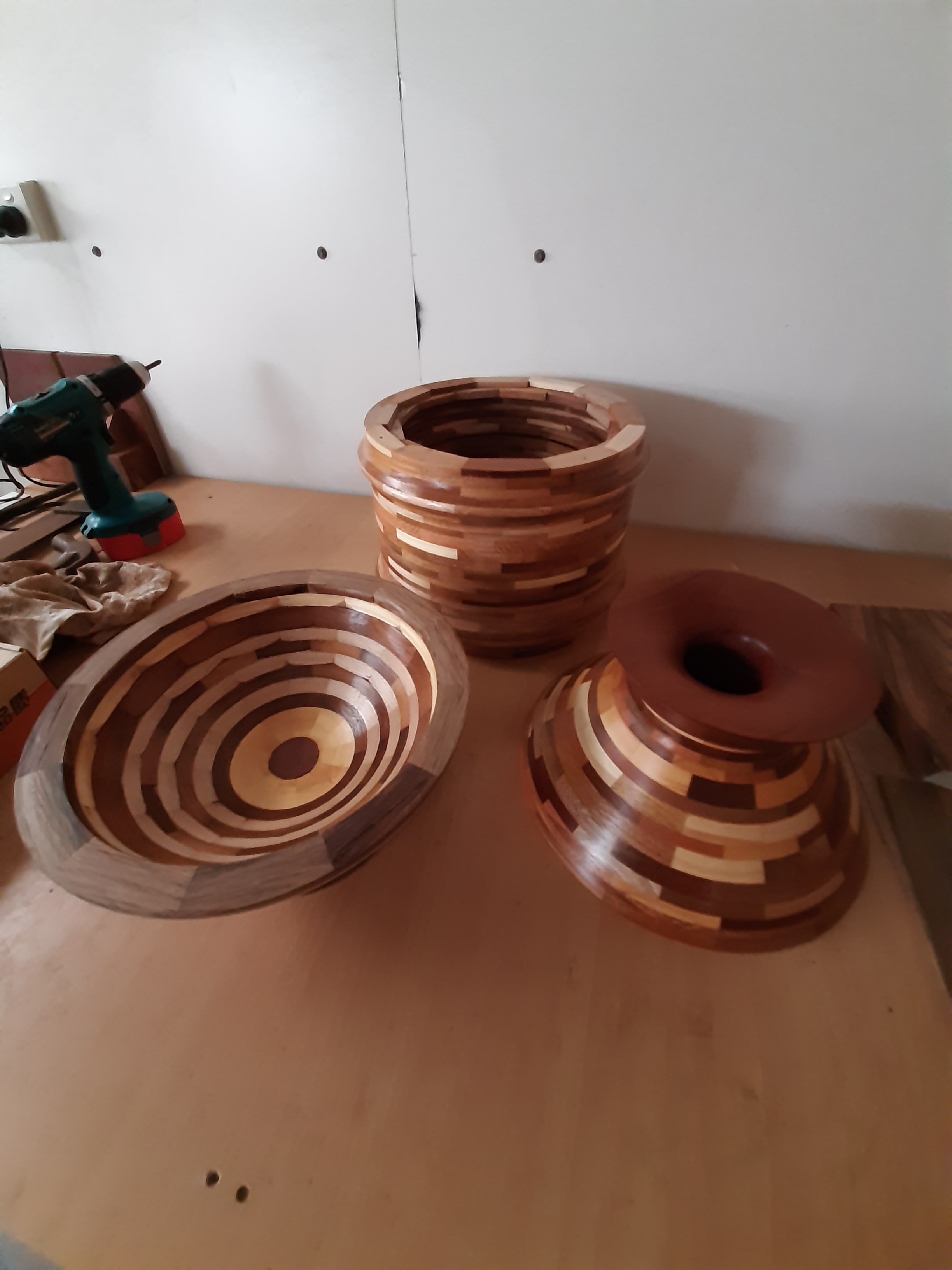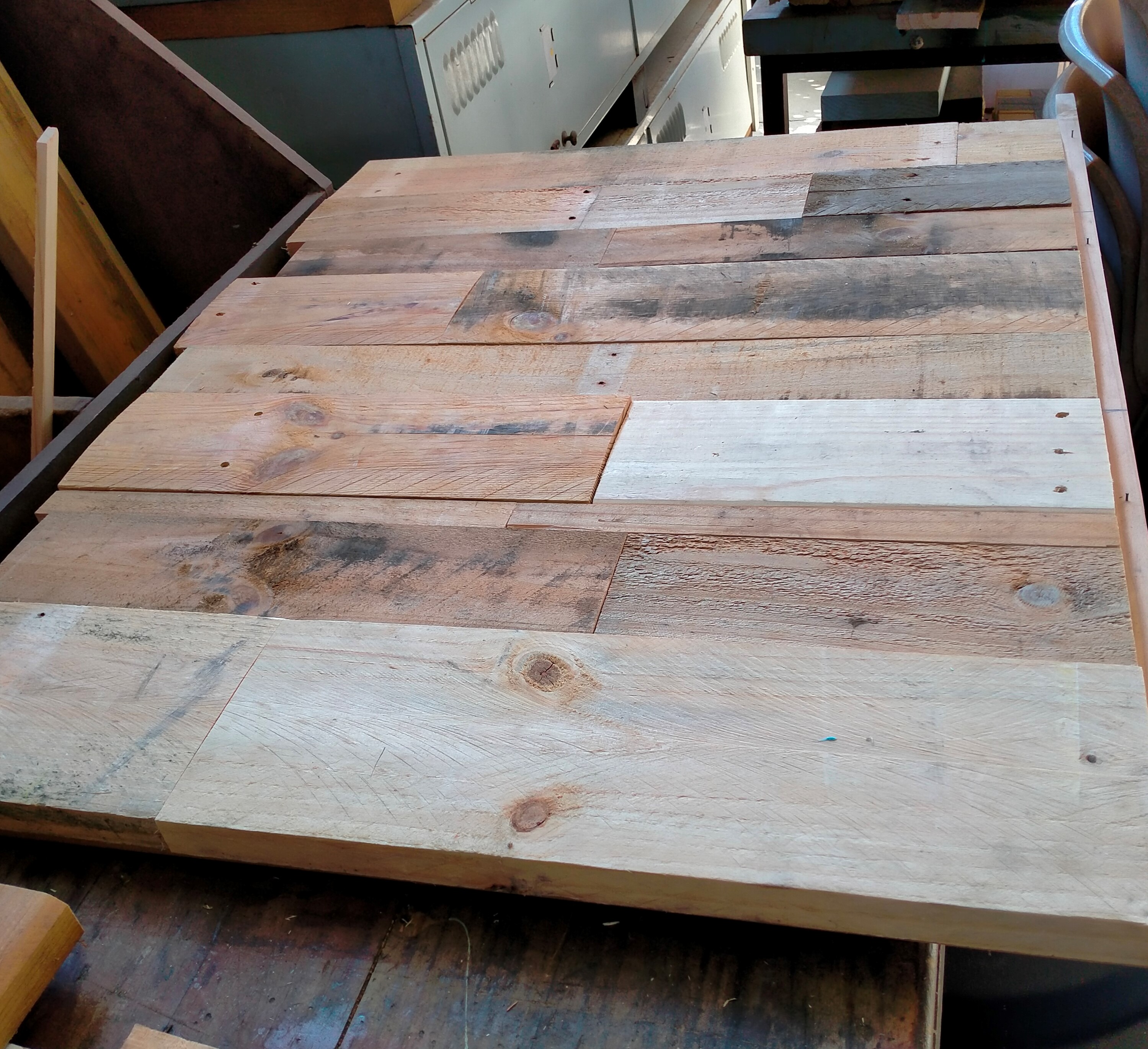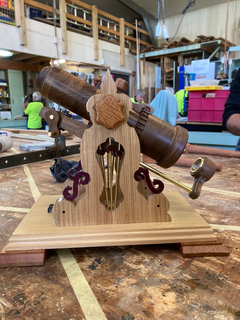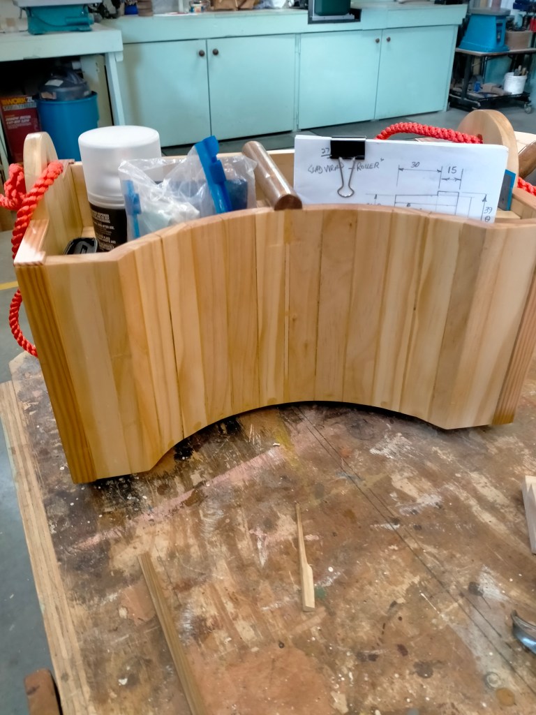 This has a been a big job with many Shed members pitching in to help at various times, and every spare bench and flat surface pressed into service for building the sub-assemblies. In the images below the table and bench parts and sub-assemblies are being built and prepared for finishing.