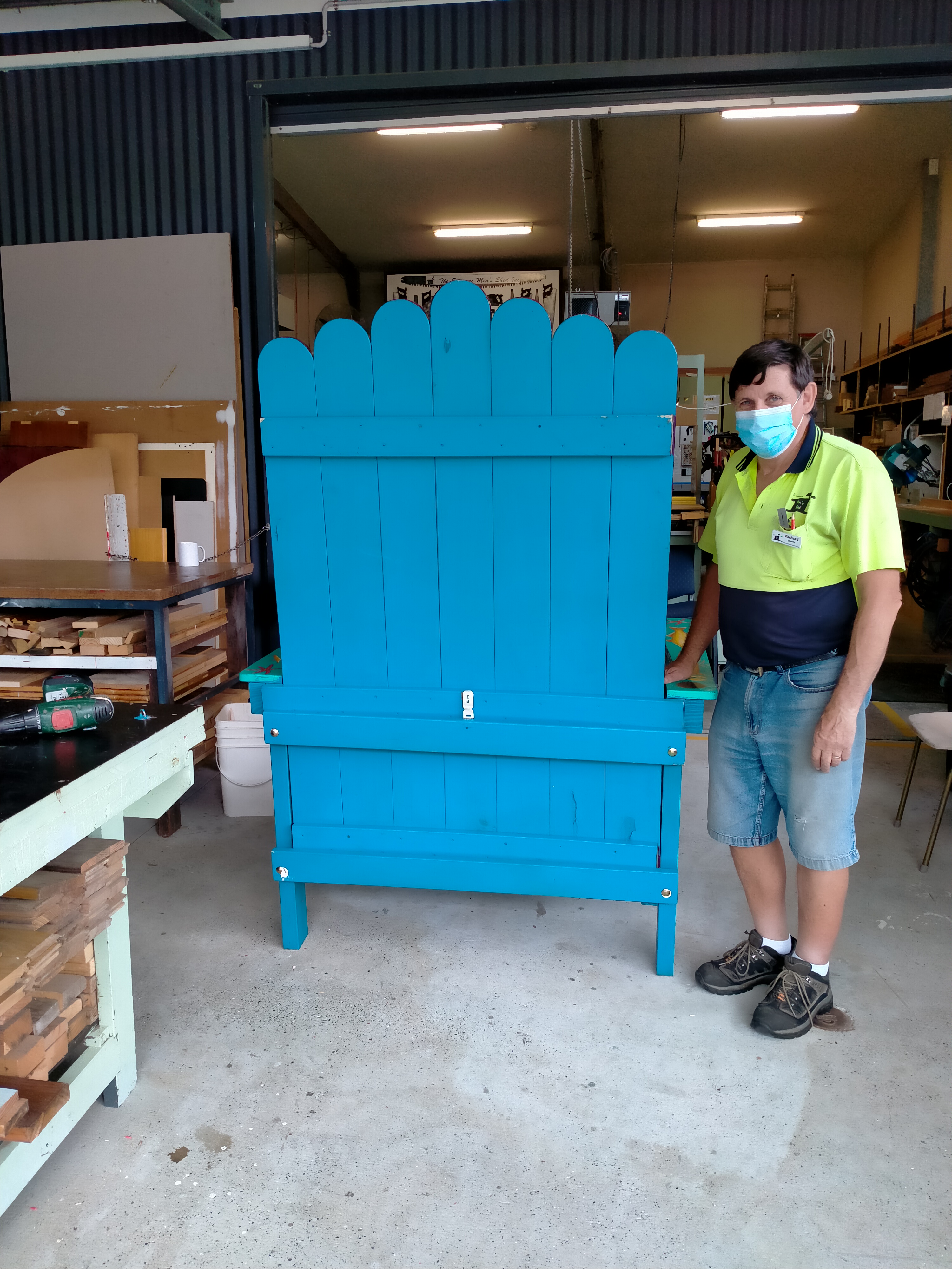 Members of The Entrance Men’s Shed have been busy over the last few weeks , building portable outdoor dining tables (12) and seating benches (26) for Central Coast Council.